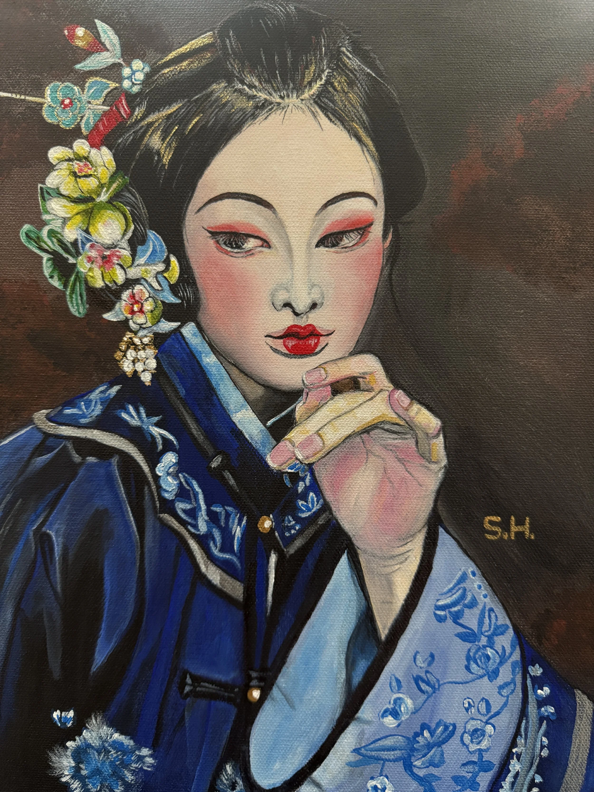 Much of my art is inspired by a deep, cultural connection to my homeland, and many of my portraits are inspired by Peking (Beijing) Opera characters and experiences from China. Many other pieces are scenes from nature, media, or fandoms that have touched and had an impact on me.