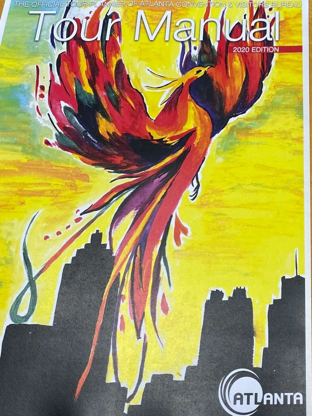 I was honored to be invited by the Atlanta Convention & Visitors Bureau to create the cover artwork for the official Atlanta tour guide, Tour Manual. For this special commission, I painted a powerful phoenix rising above the Atlanta city skyline - symbolizing resilience, rebirth, and the city’s unstoppable spirit. The artwork celebrates Atlanta’s dynamic energy and its continual evolution, capturing both its rich history and bold future in a single, striking image.